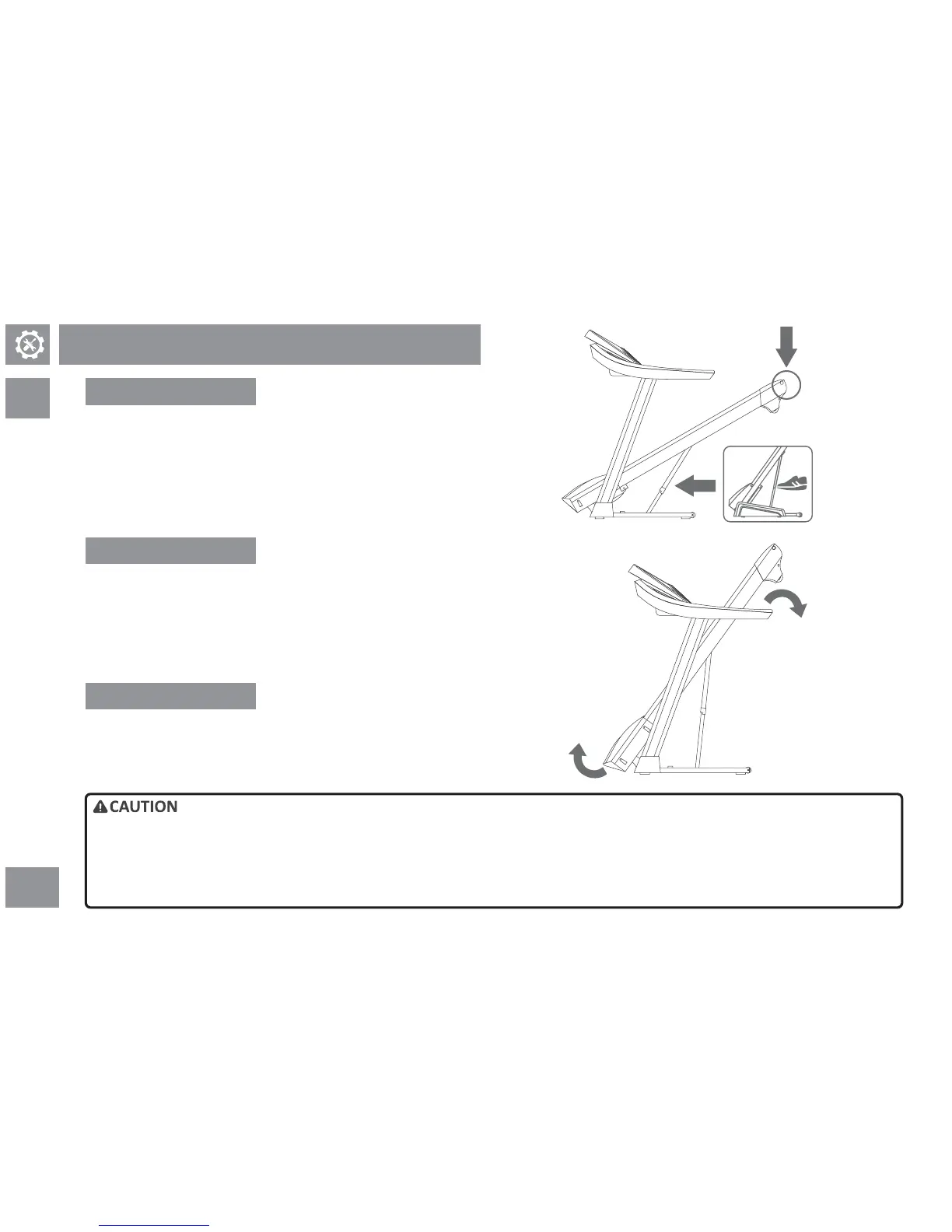 treadmill without a folded and fixed deck can result in personnel injury or