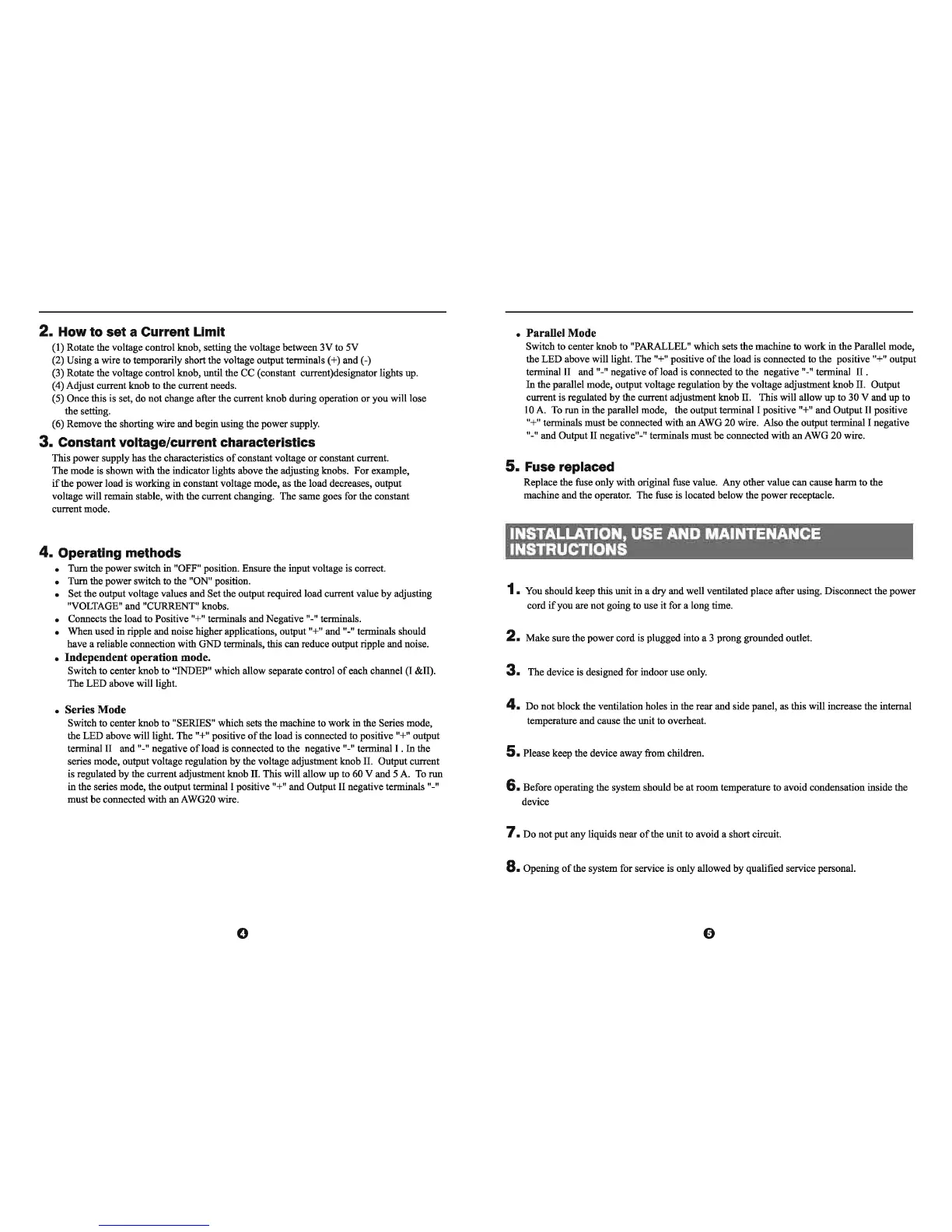 Atten APS3005S-3D - Setting Current Limit; Constant Voltage;Current Characteristics; Operating Methods; Independent Operation Mode