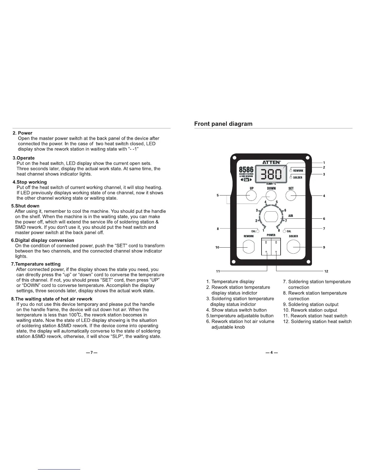 Atten AT8586 - Front panel diagram; Device Operation; Power Management and Basic Operation; Display and Indicators