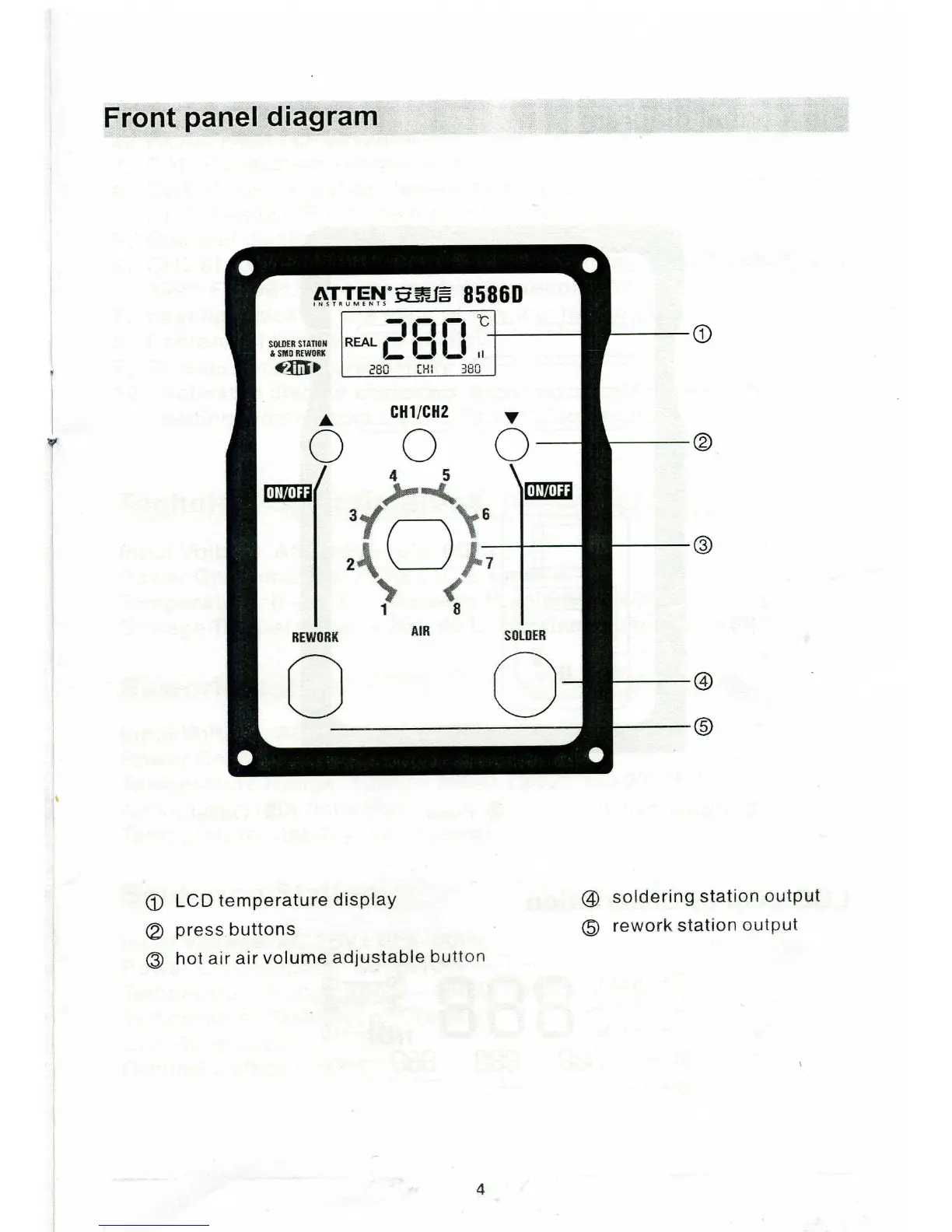 Atten AT8586D - Front Panel Diagram