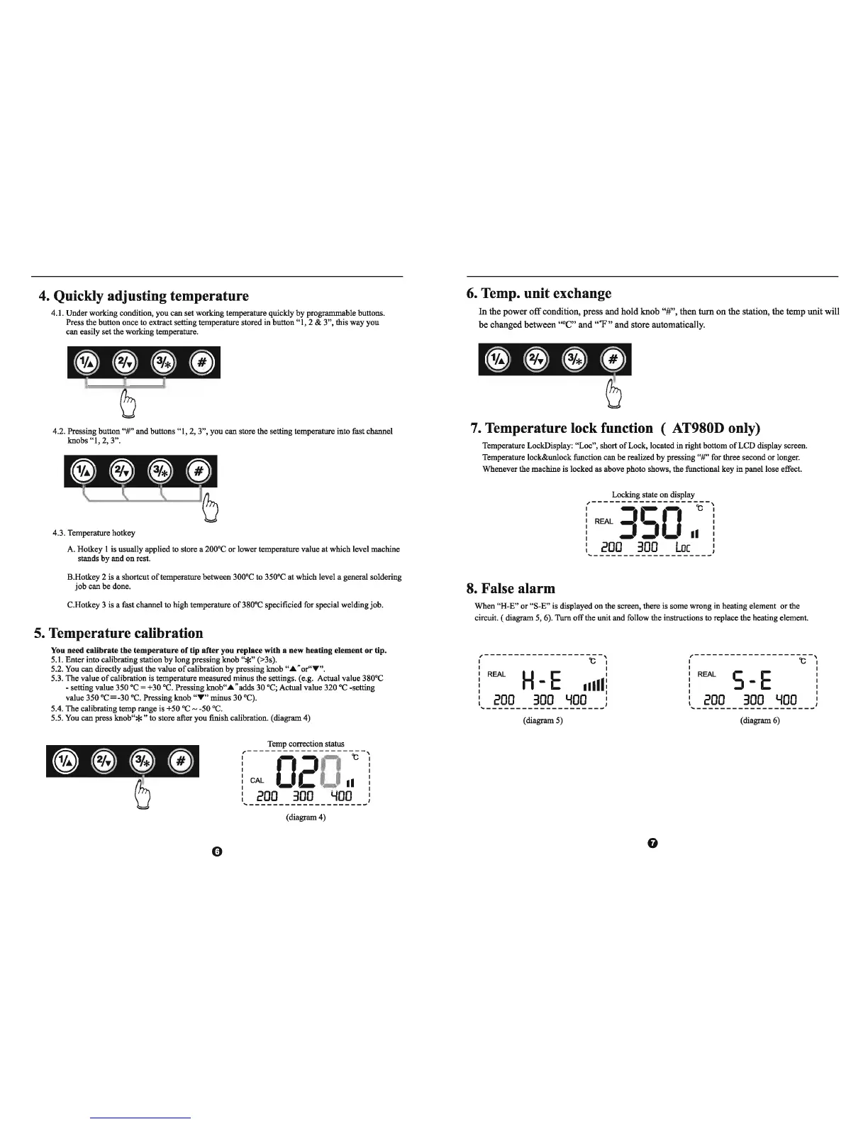 Atten AT938 - Quickly Adjusting Temperature; Temperature Calibration; Temp. Unit Exchange; Temperature Lock Function (AT980 D Only)