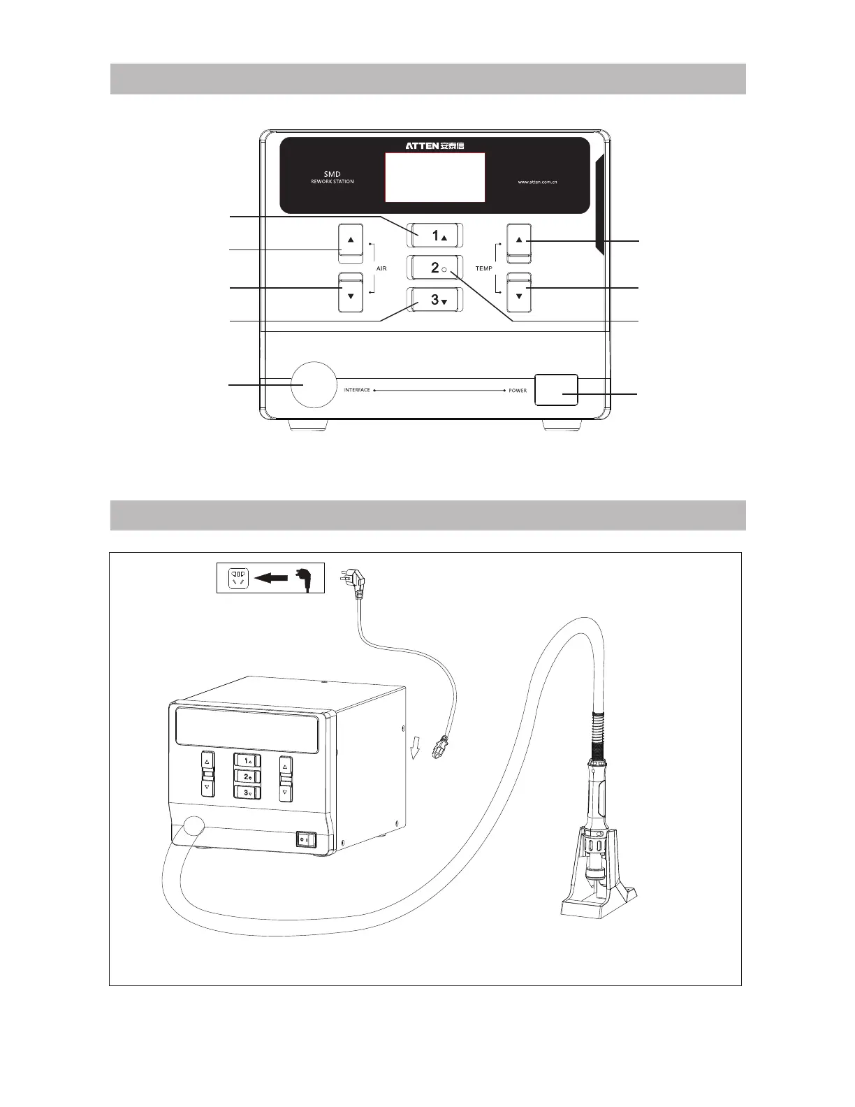 Note: The hot air handle connected with host