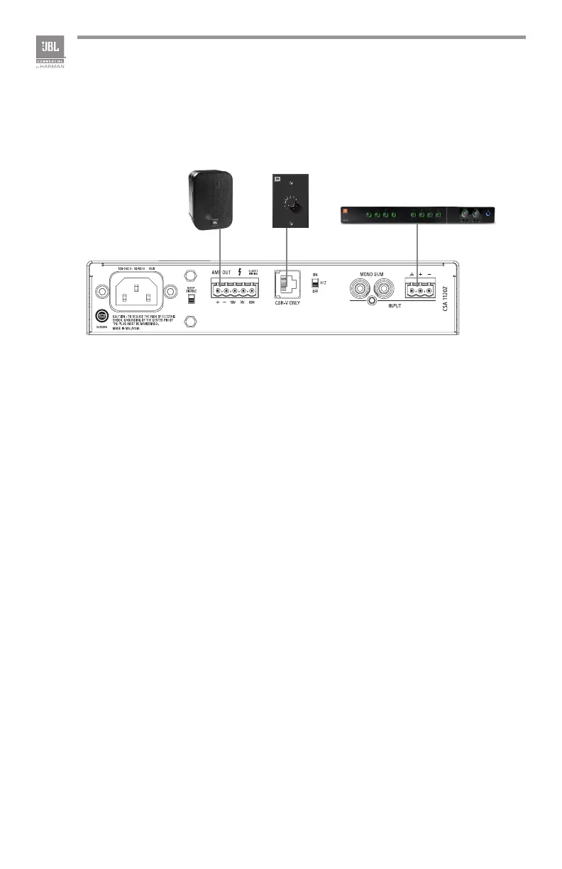 INPUTS: Connect input wiring for both channels using either the RCA or the Euro-