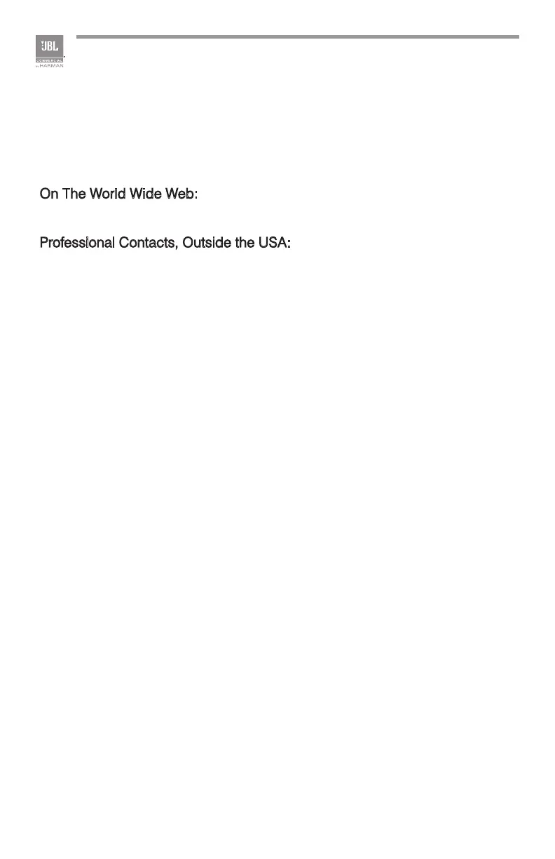 For additional information, please consult JBL Professional Customer Service, your