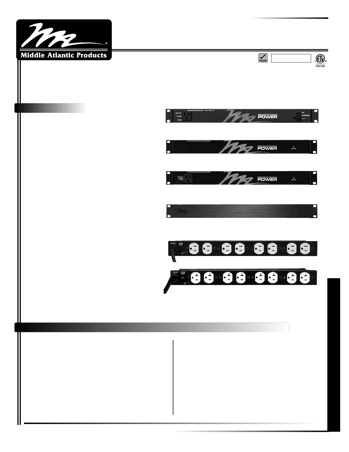 EIA compliant 19” Rackmount power strip shall be Middle Atlantic Products model # __