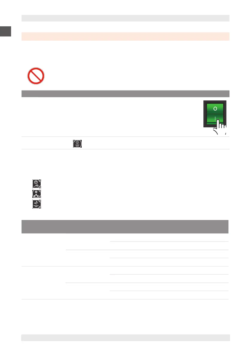 Do not start the equipment with wet hands or when there is contact with water.
