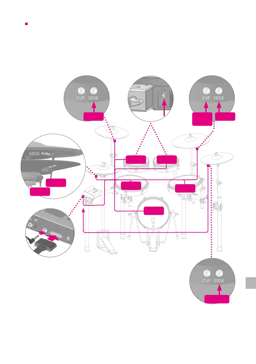 First connect the multi-trigger cable to the xD3 drum sound instrument and then to each pad.