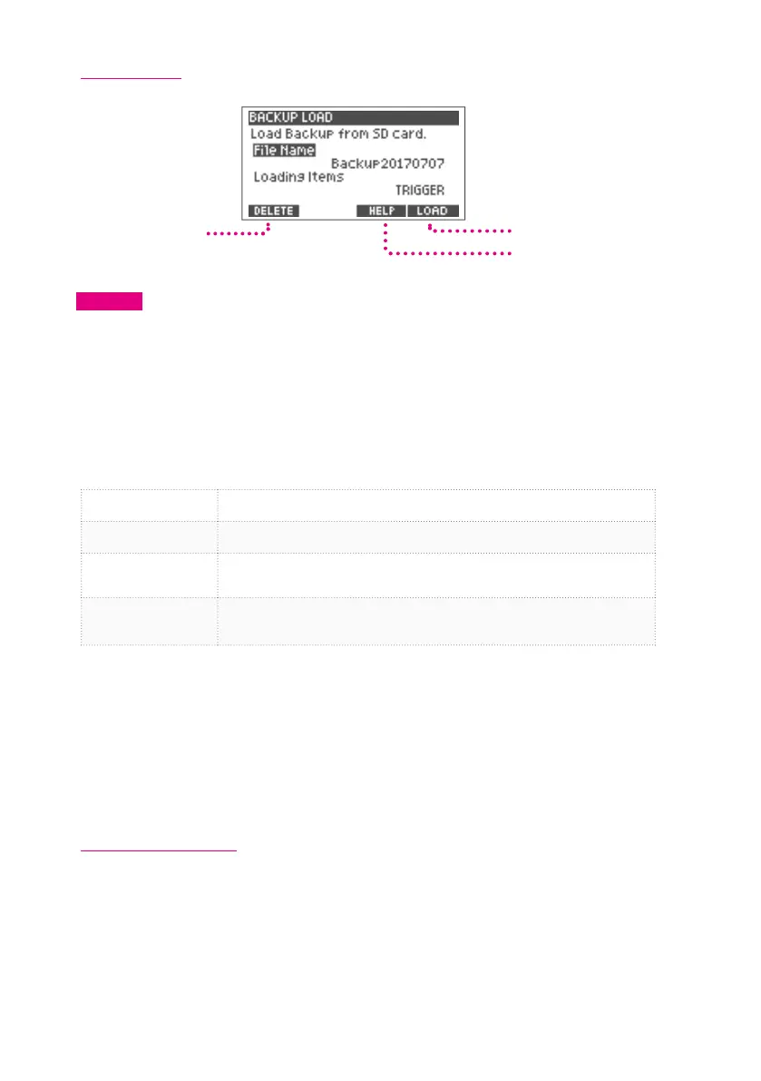 When you load the backup, some or all of the data in the xD3 will be deleted.