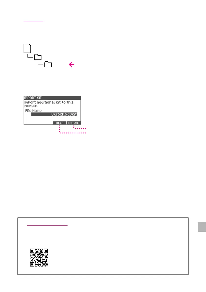 Place the downloaded drum kit le (xxxx.xd3kit) in the Import folder of the SD card.