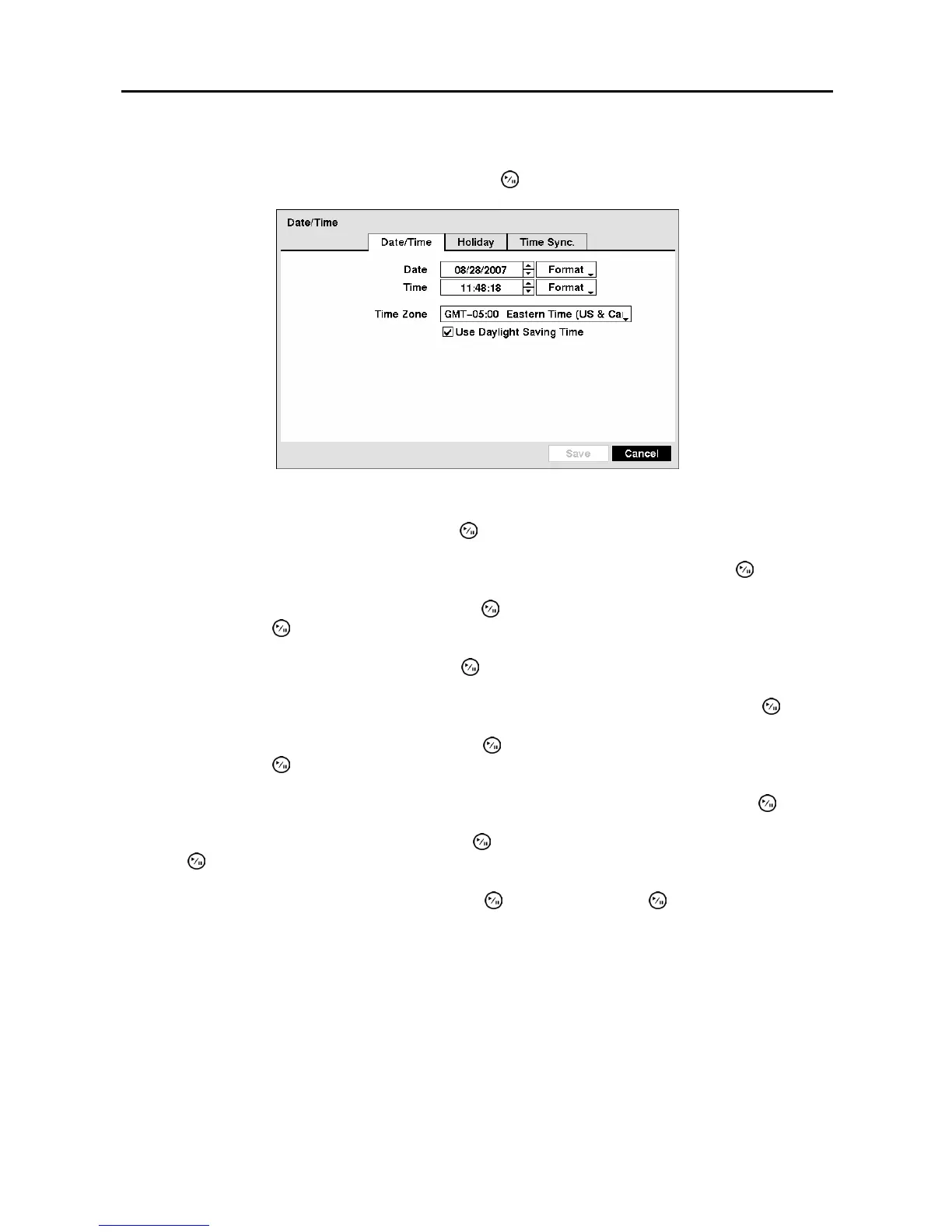 button. The Date/Time setup screen appears.