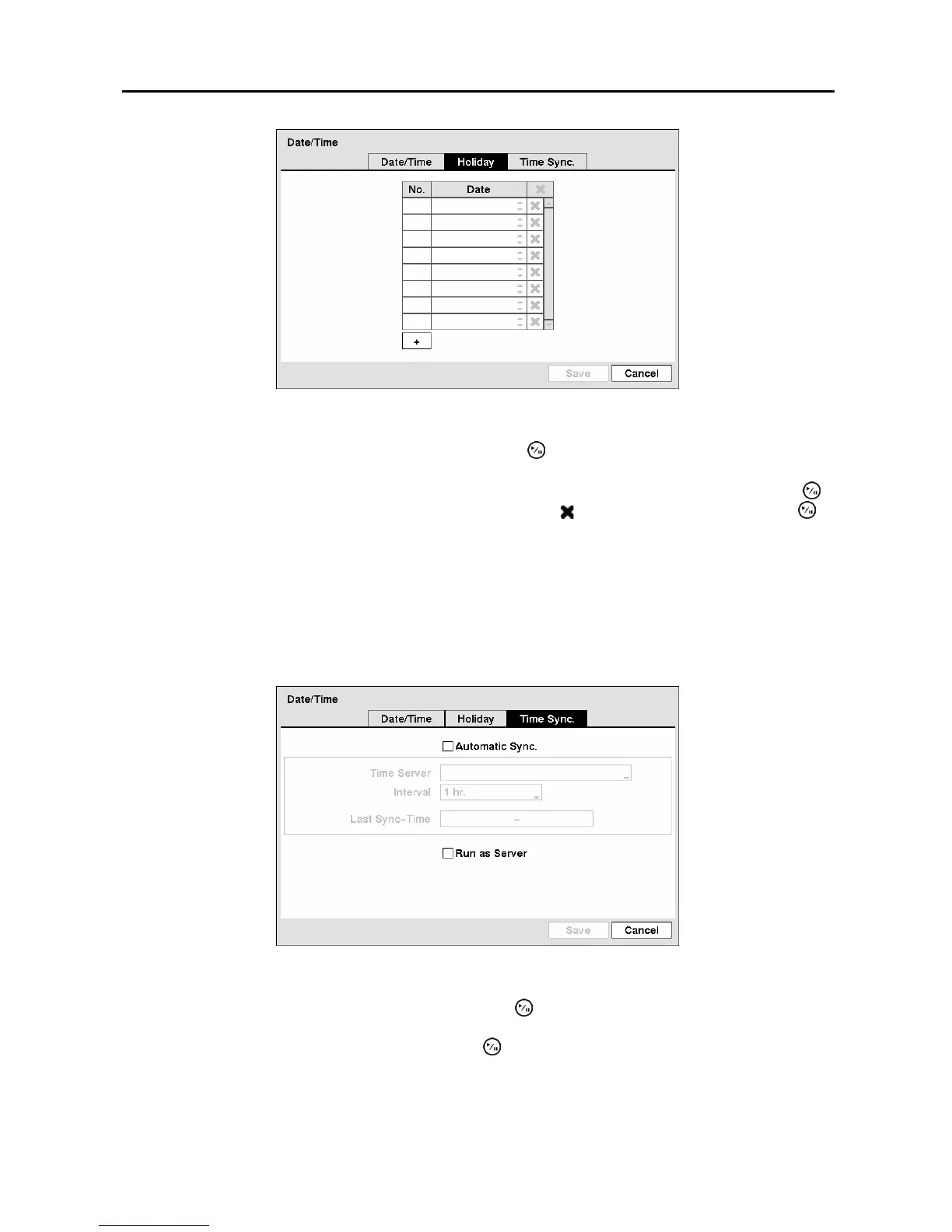 Highlighting the Time Sync. tab causes the Time Sync. screen to display. You can set up time