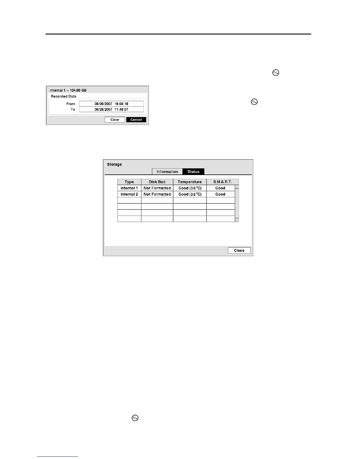 NOTE: When the storage condition is “Bad”, the Event Status – Storage screen displays and you