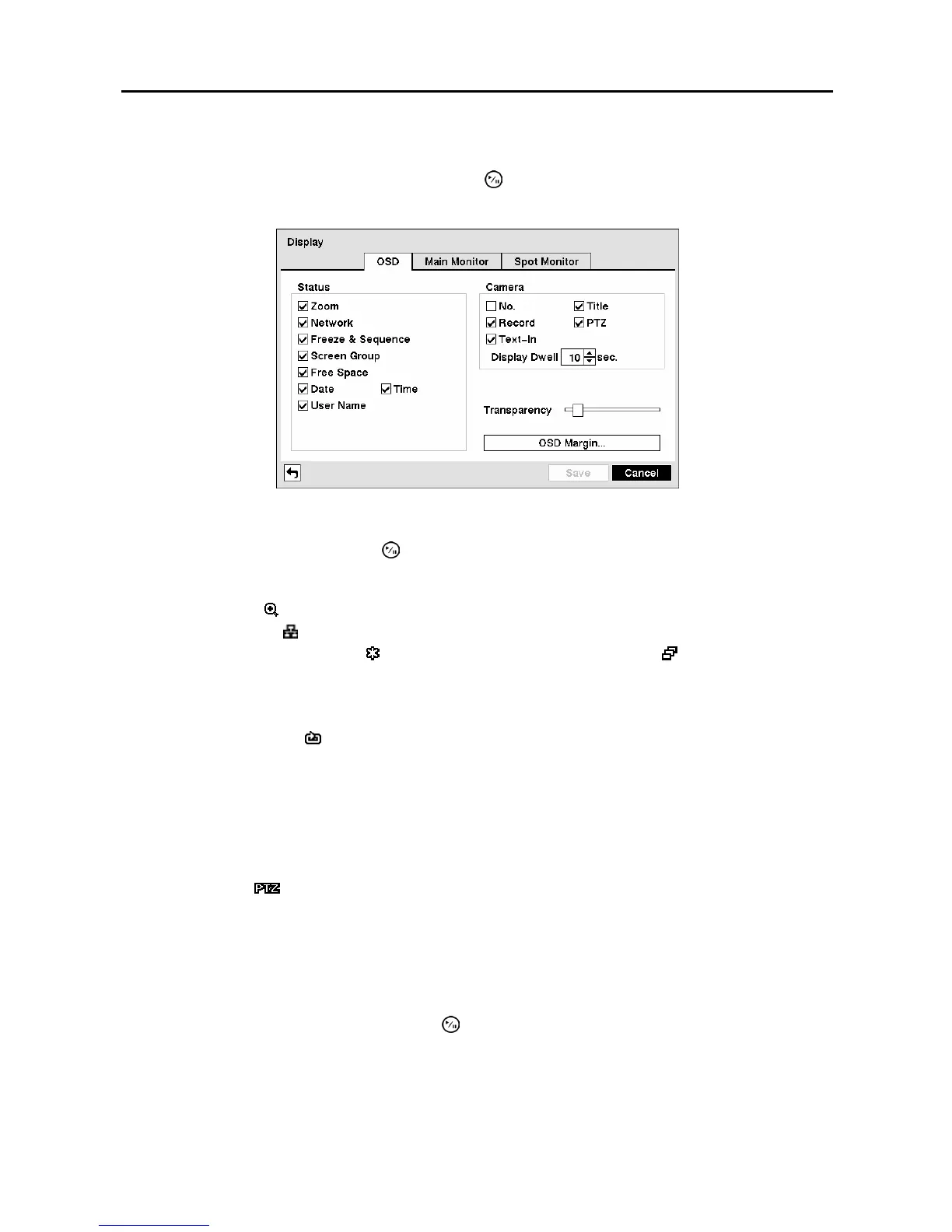 y Screen Group ─ The number of screen group displays when the DVR is not in the 4x4 display mode of the