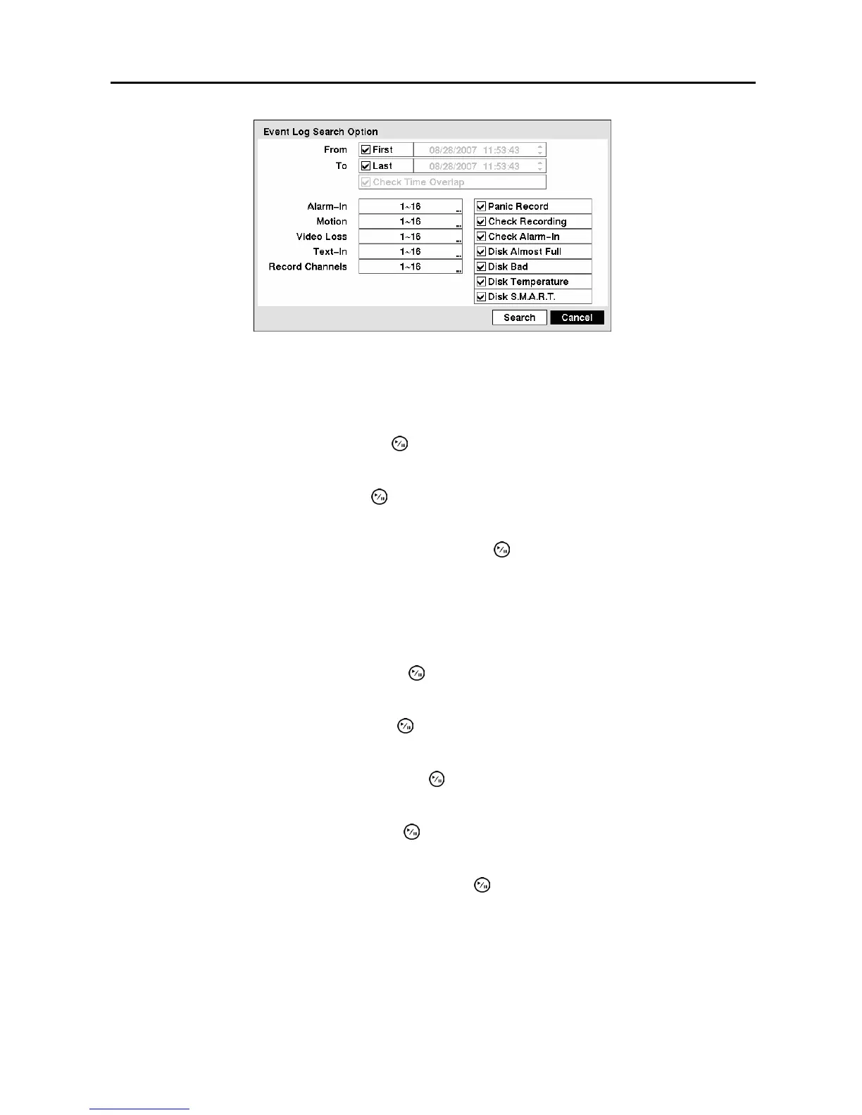 do not select a camera channel in this field, the DVR will search events that are not associated with