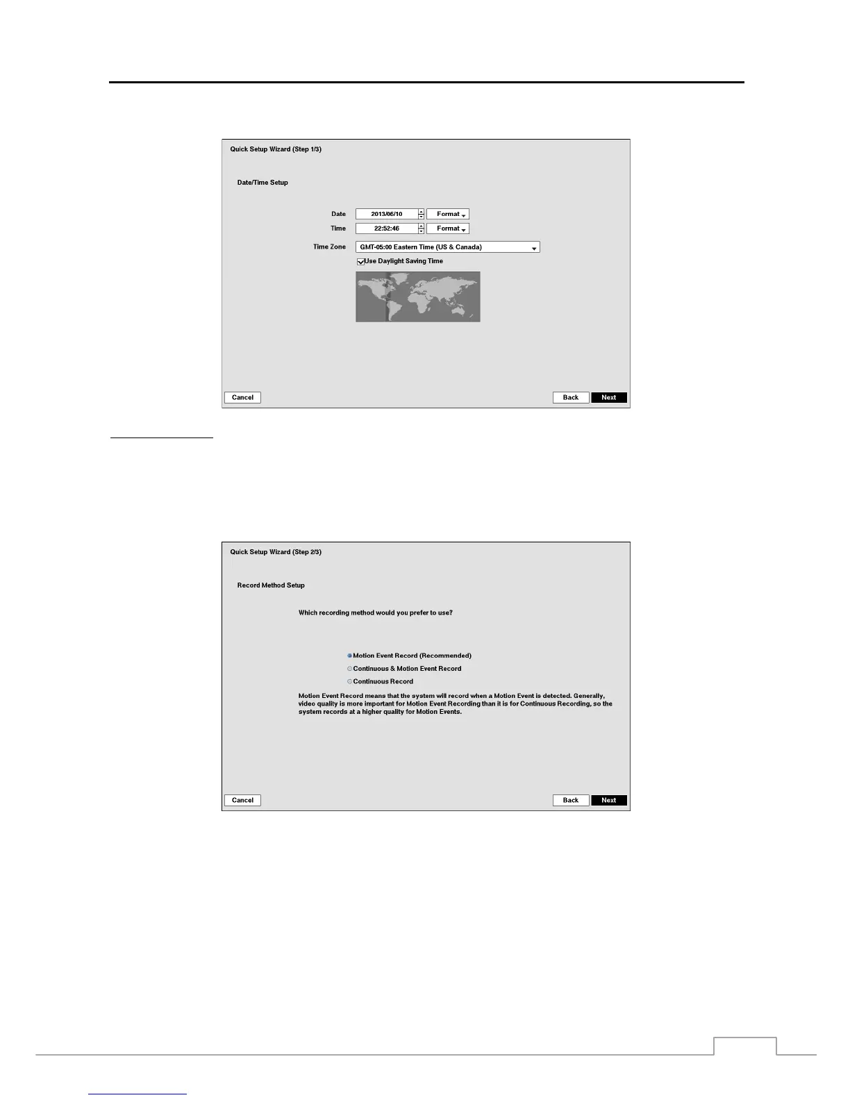 NOTE: The Date/Time will be set, and the clock will start when you click the Next button.