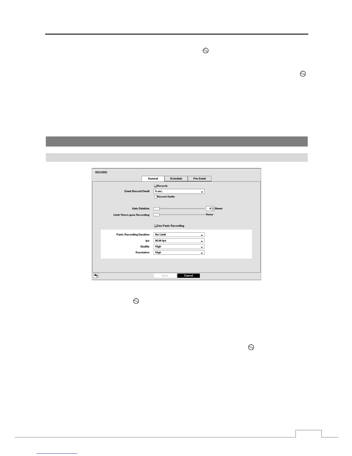 Figure 13: Record – General setup screen.