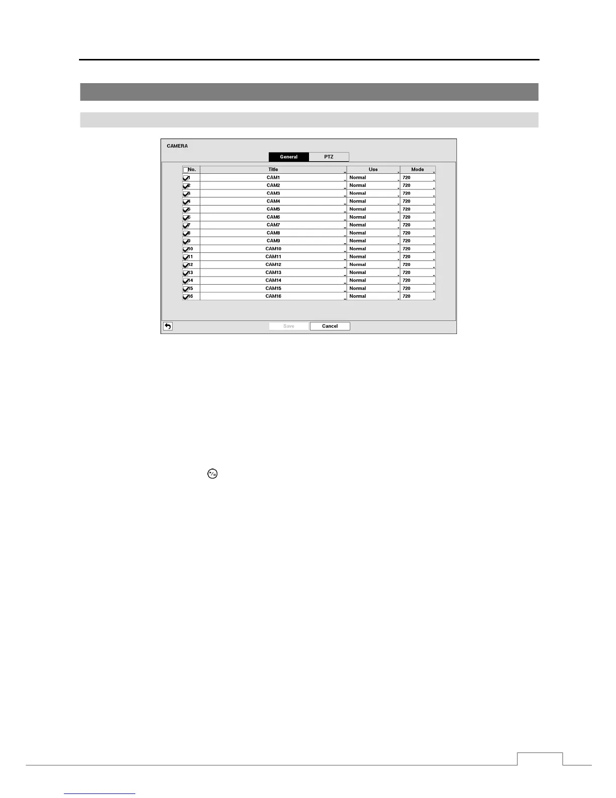 Figure 22: Camera – General setup screen.