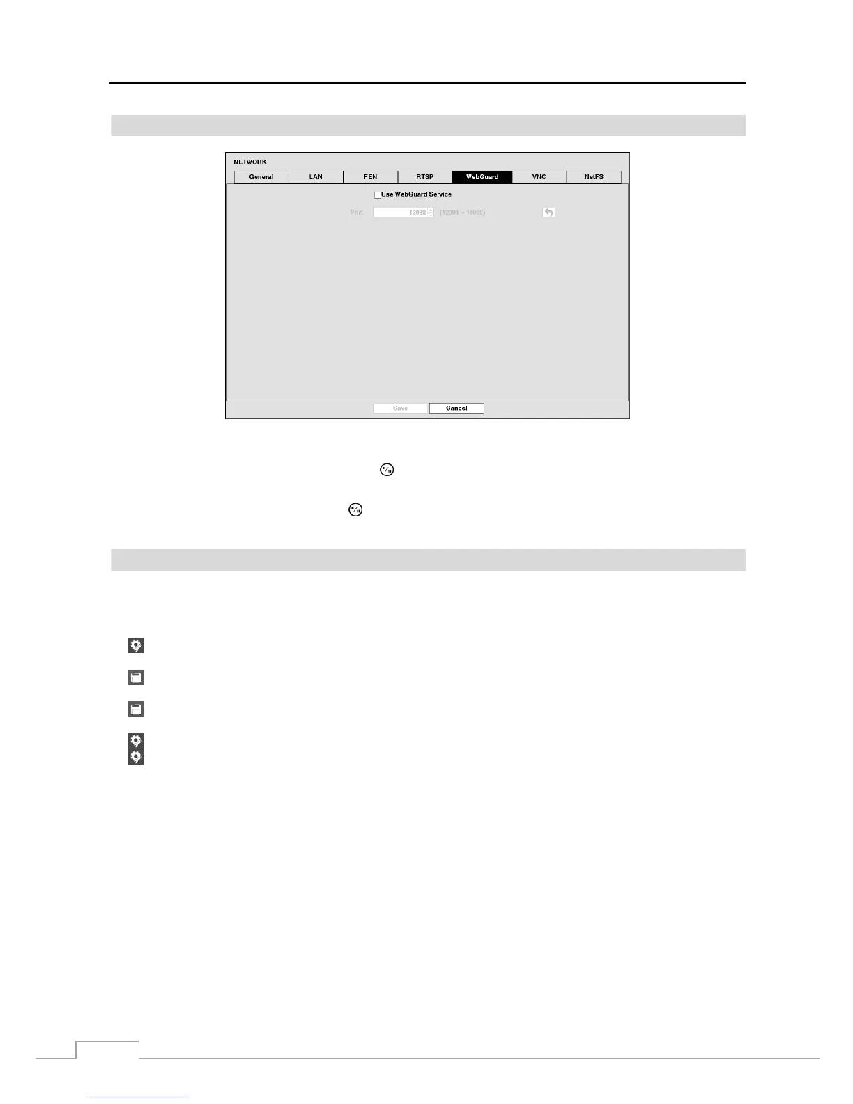 Highlight the box beside Port and press the button. Set the port number used when accessing WebGuard by using