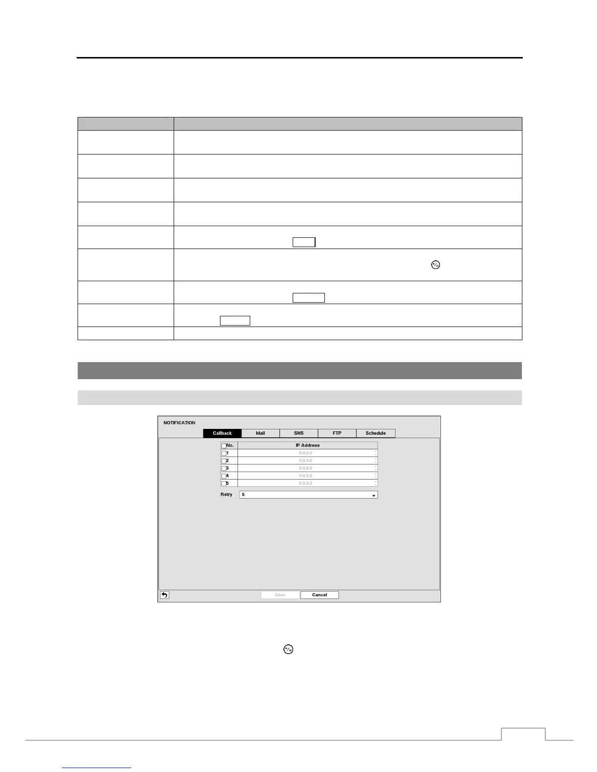 Figure 34: Notification – Callback setup screen.