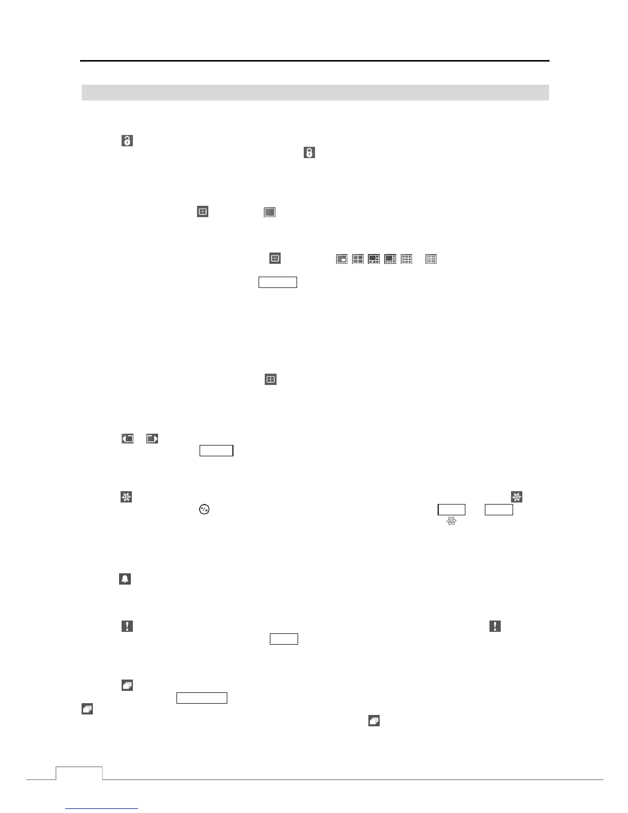 (Alarm) in the Live Monitoring menu resets the DVR’s outputs including the internal buzzer during an alarm.