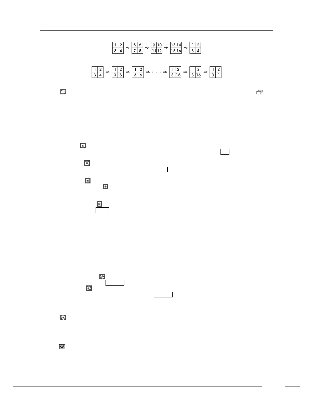 displays in bottom-left corner if Sequence is selected in the Display setup screen (OSD tab). If all the cameras in a page