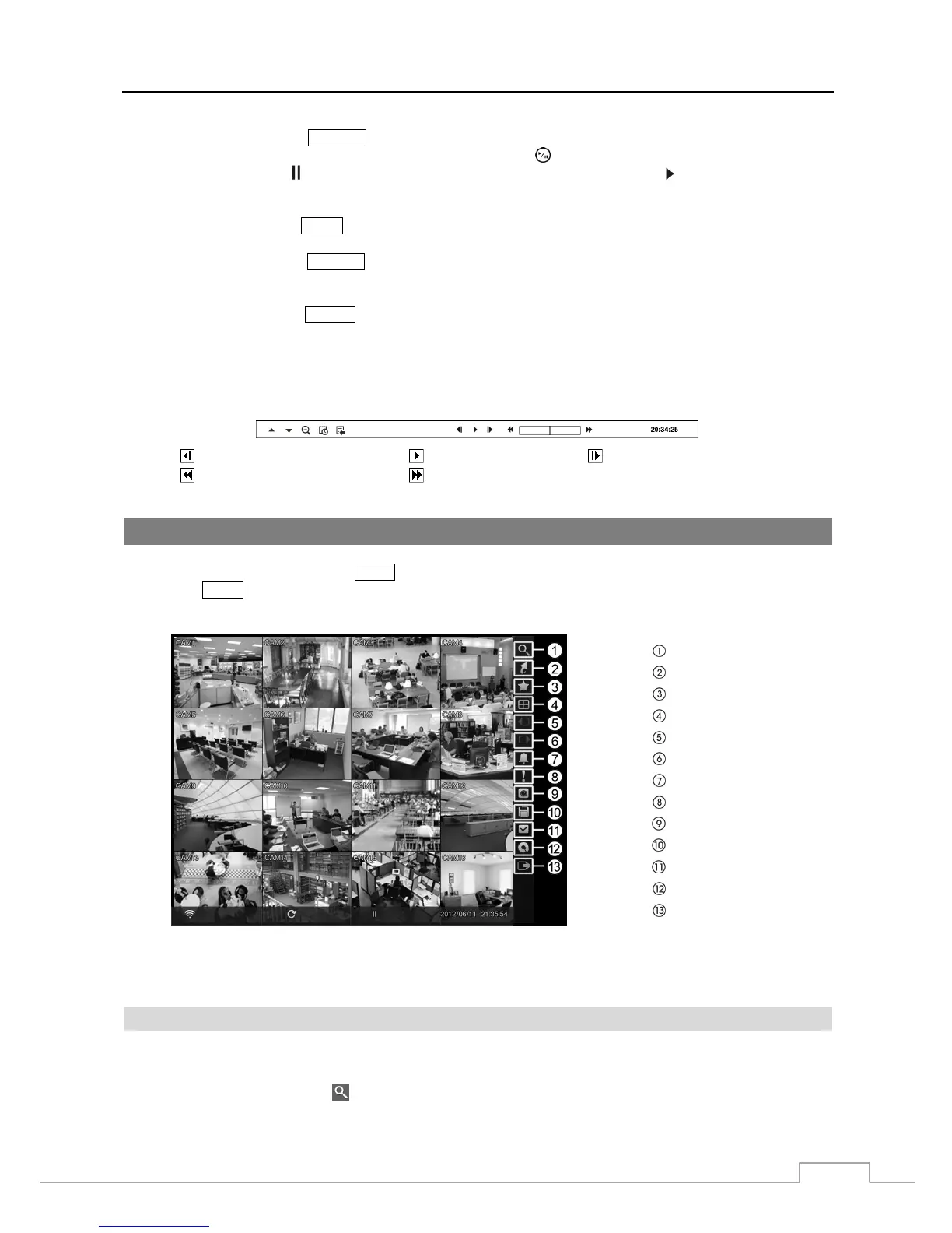 mode. When entering the search mode, video is paused. Pressing the (Play/Pause) button plays back video at regular