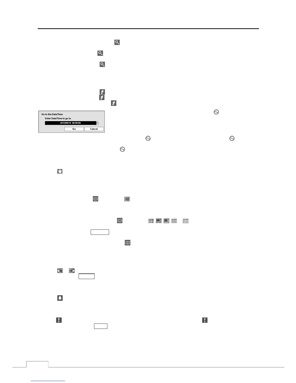 (Alarm) in the Search menu resets the DVR’s outputs including the internal buzzer during an alarm.
