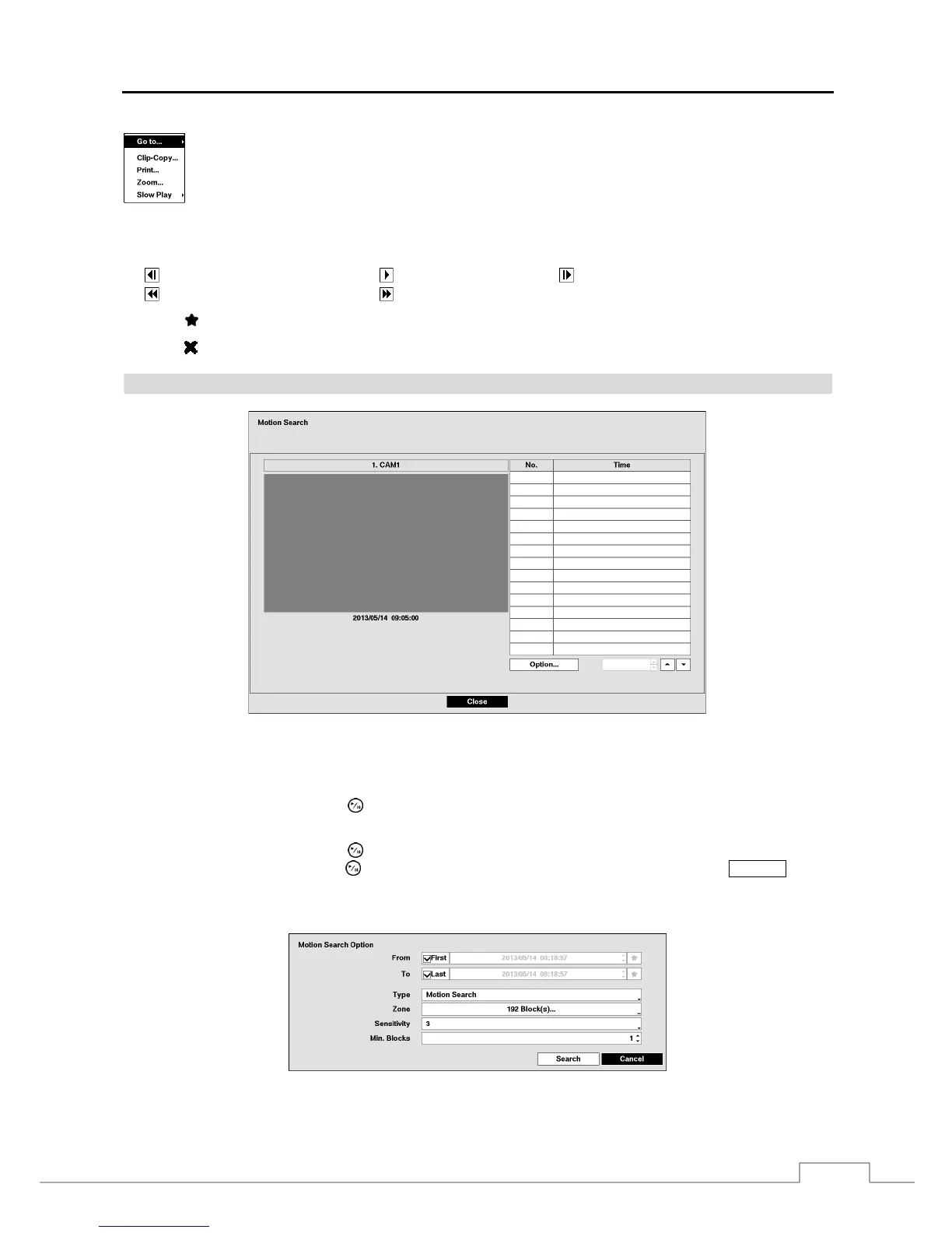 The Motion Search… can be selected from the Search menu while the DVR displays the camera full screen. The