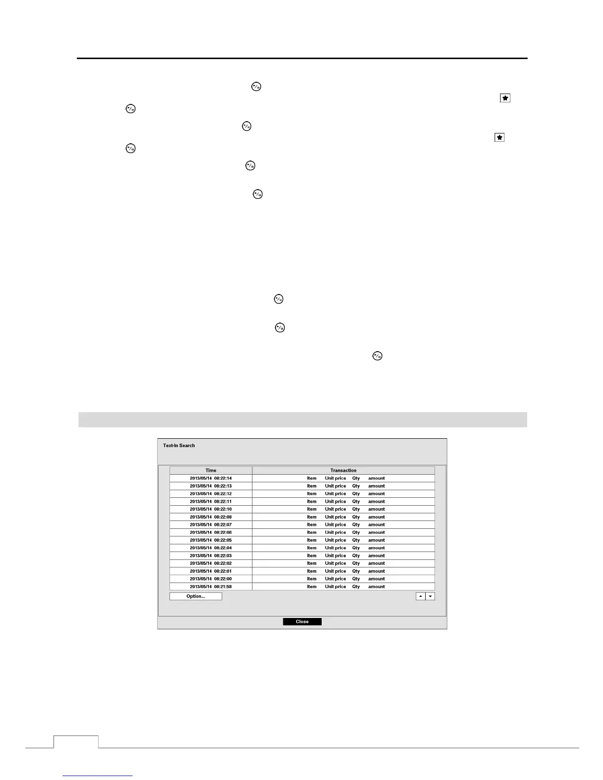 The DVR maintains a log of each time there is Text Input. The Text-In Search screen displays this list. Use the arrow