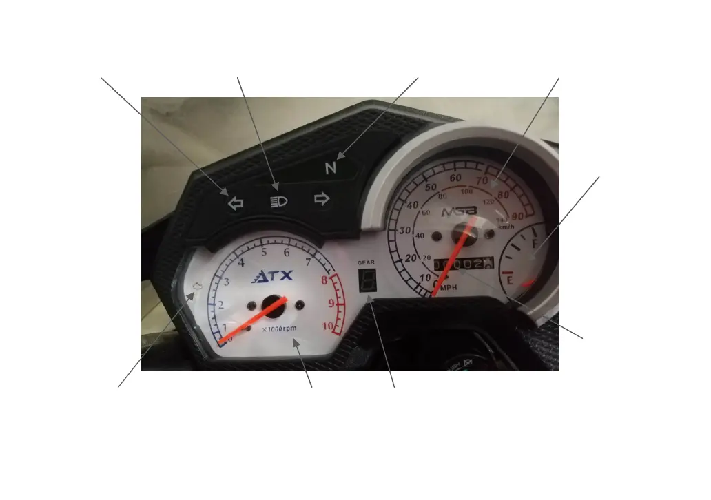 Neutral warning light Turning indicator light Speed indicator