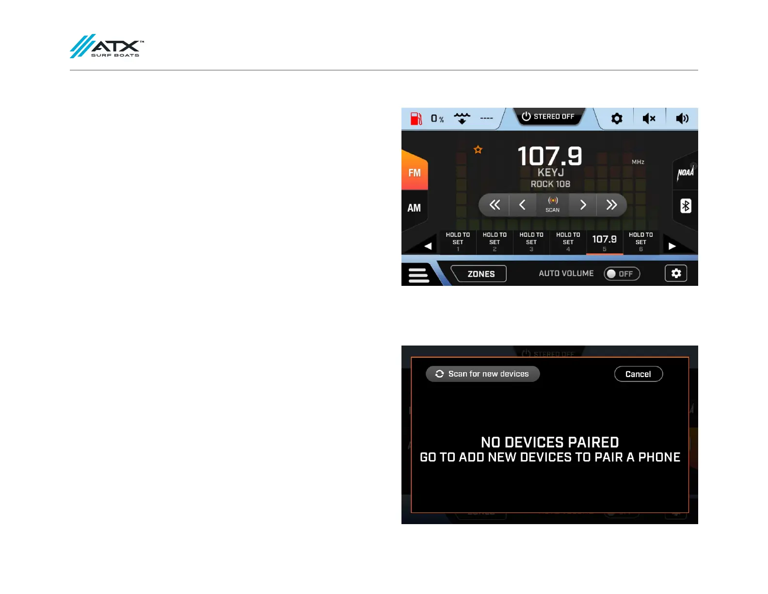 The ATX stereo can play music from a Bluetooth device, AM/FM Radio, or NOAA
