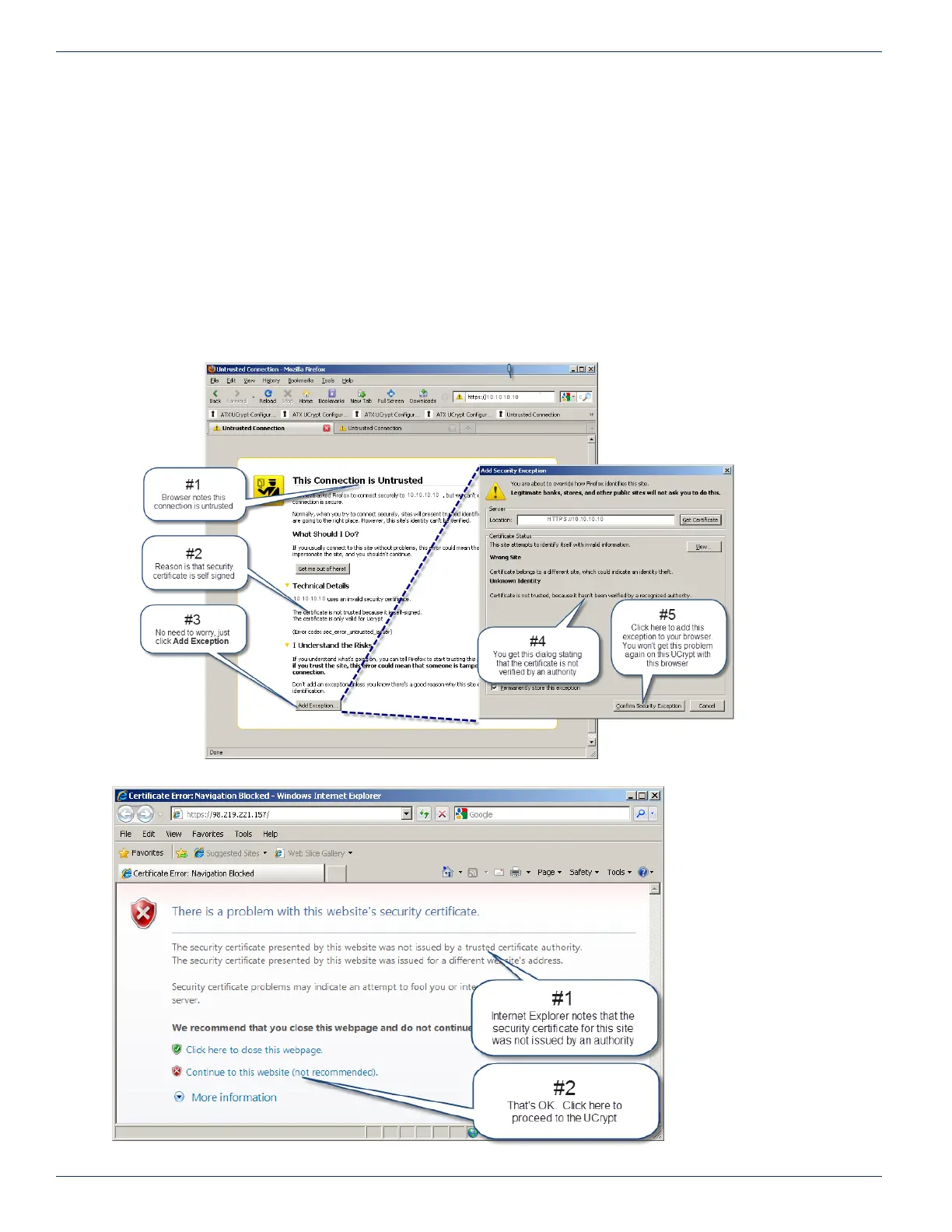 security violation or error. This is due to the UCrypt device having a self signed security certicate and is not a security threat