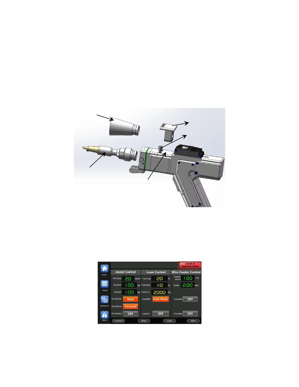 Click the red button "Switch to cleaning mode" on the upper right of the welding