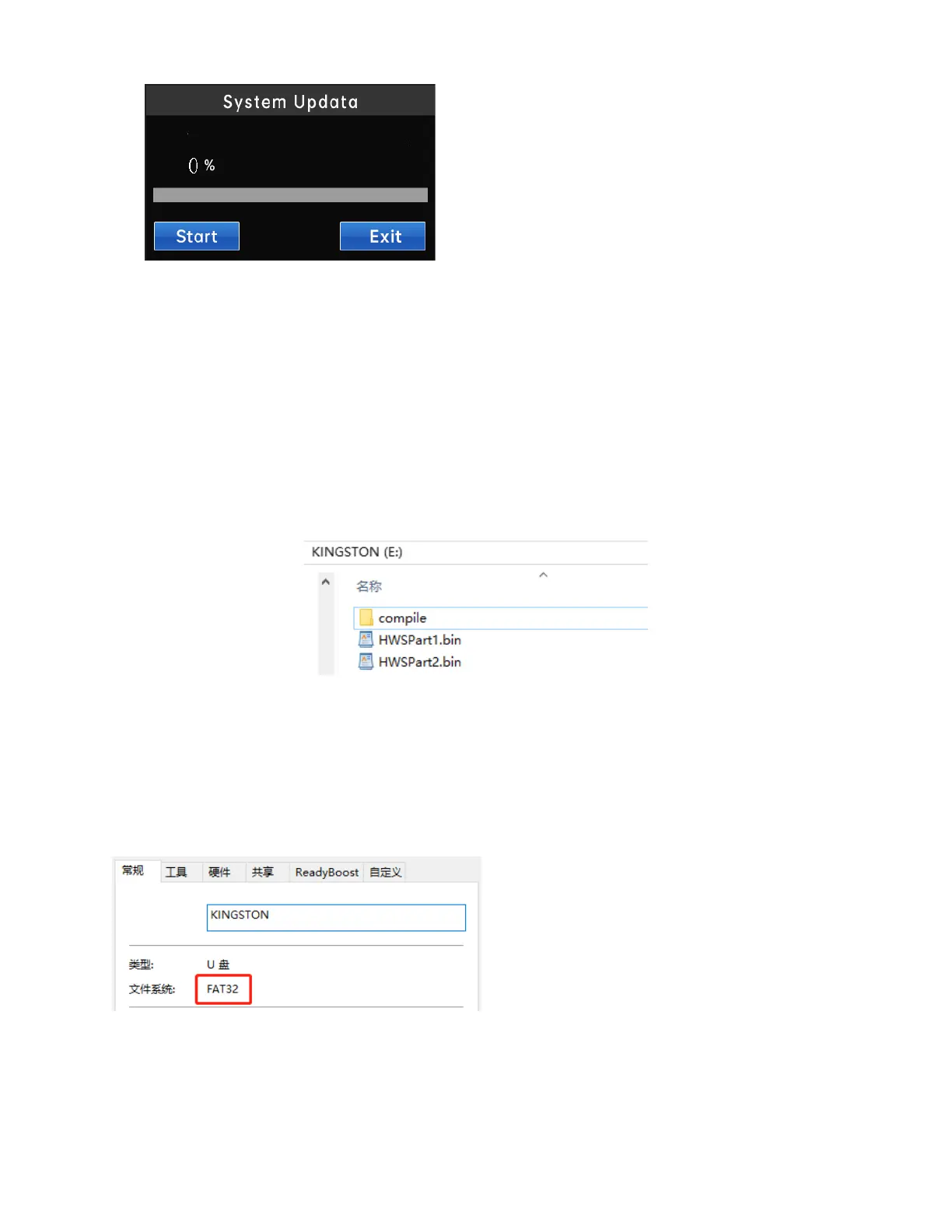 2) It is recommended to use a FAT32 format USB flash drive for updating the program. (After entering the U disk