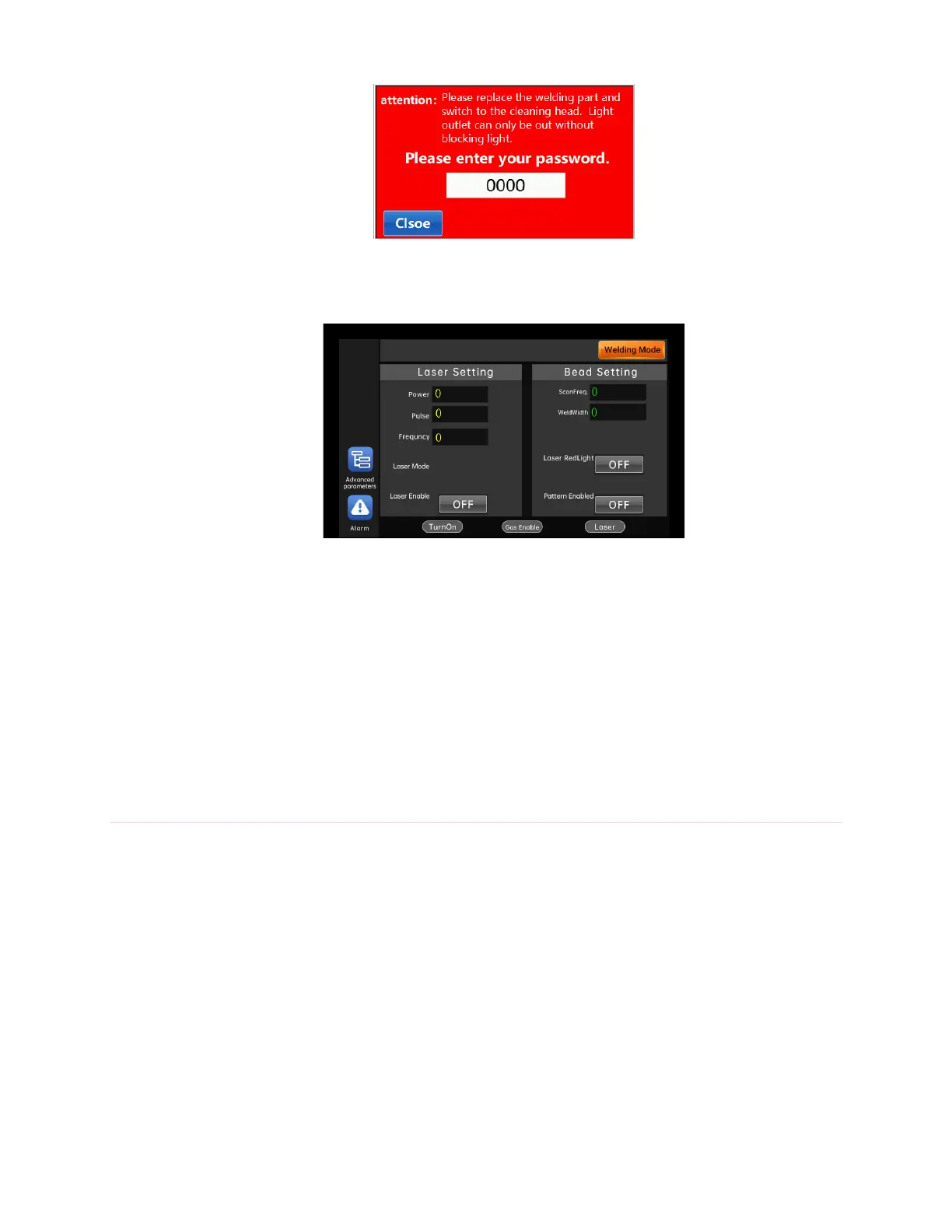 to welding mode" in the upper right corner of the cleaning interface to switch