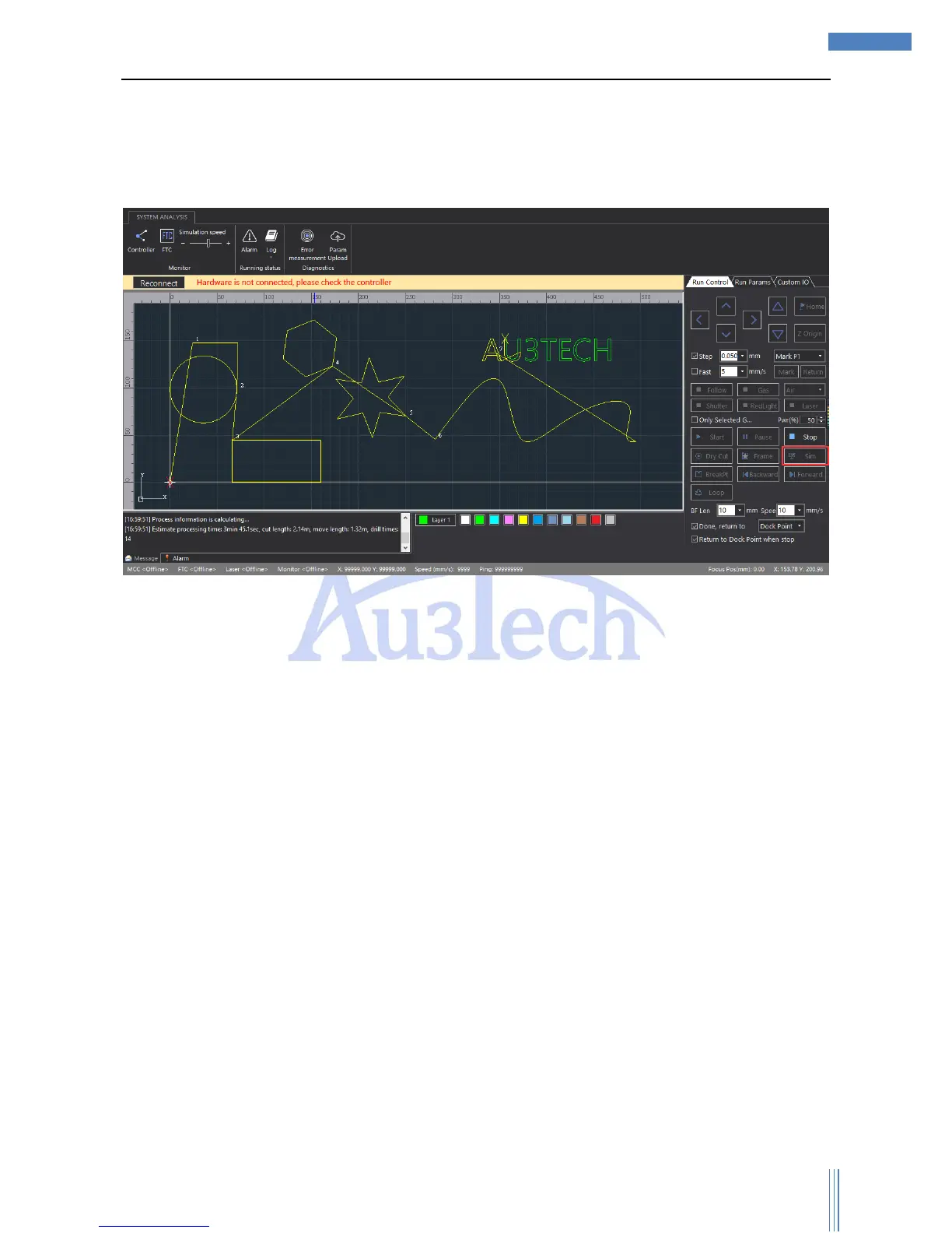 5) Click “Sim”, SC1000 will auto-simulate the cutting track, and the simulation speed can be adjusted.