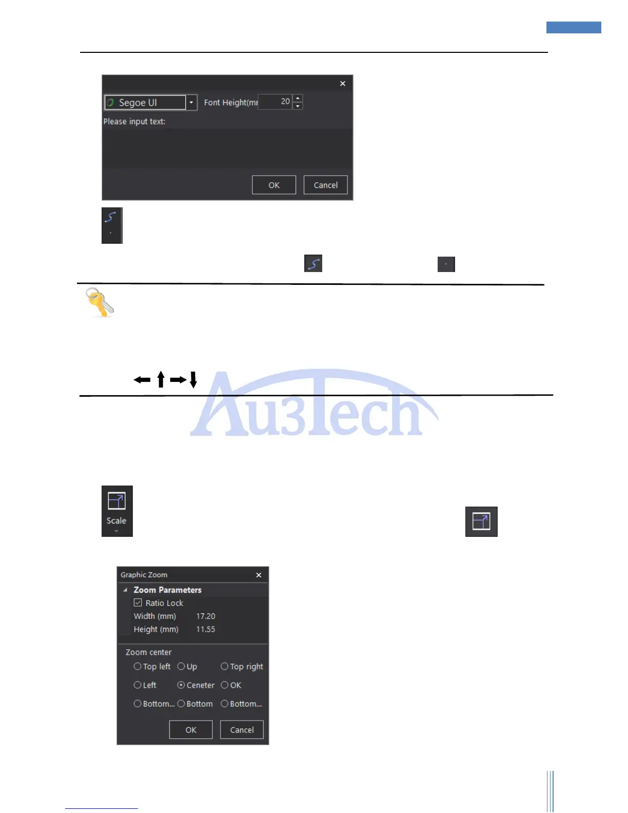 1) :User can adjust the size in proportion of the selected graphic. Click “ ” to set up