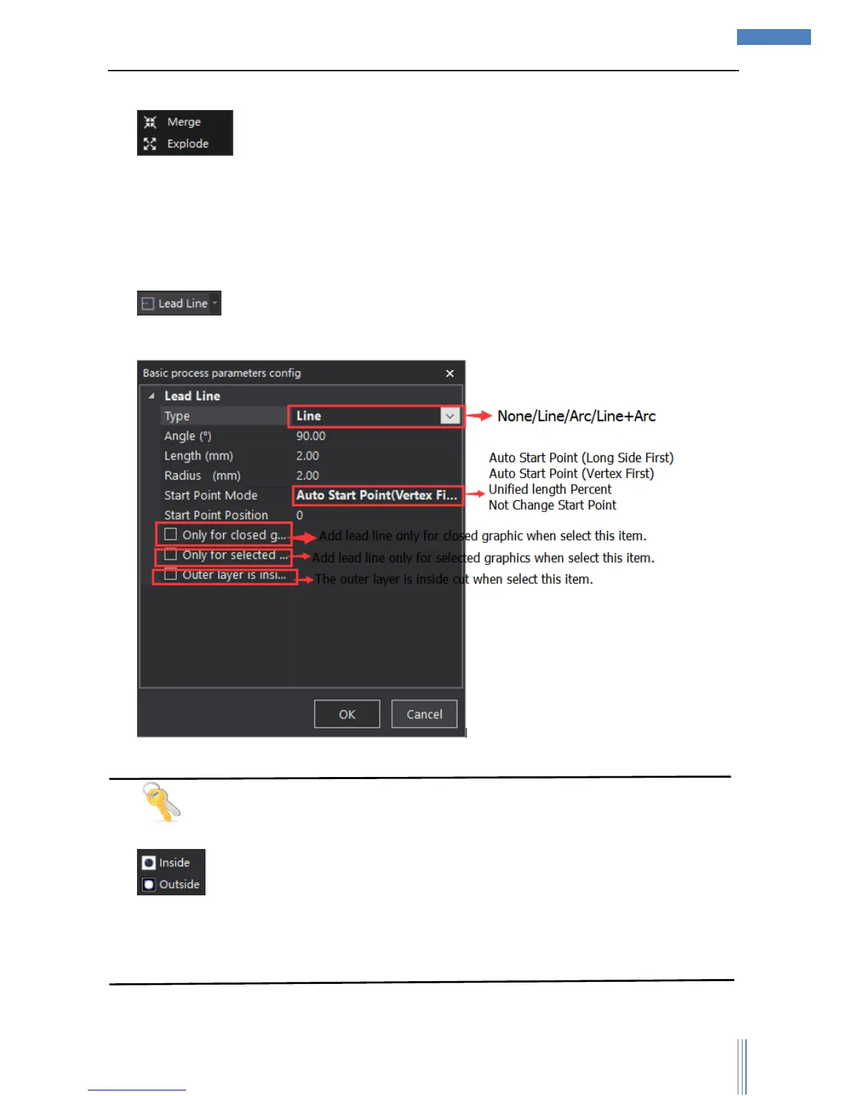 outside cut (default), if the outer layer needs to be inside cut, please select “Outer layer is inside
