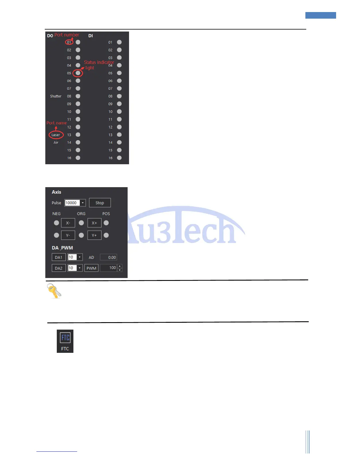 2) “Focus tracking controller” can monitor the running status of Z axis. User can set up the