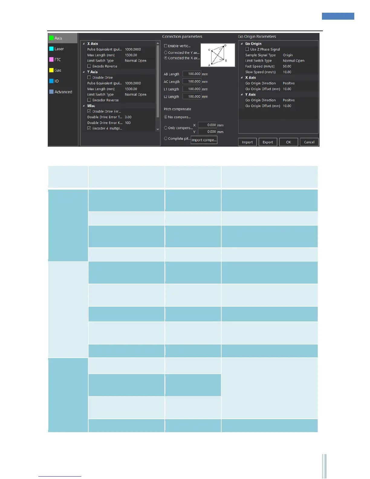 The descriptions of each axis shows as below :( Y axis has the same parameters as X axis.):