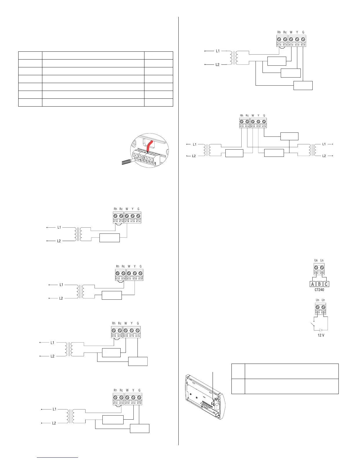 Note: Remove the red jumper wire between terminals Rc and Rh.