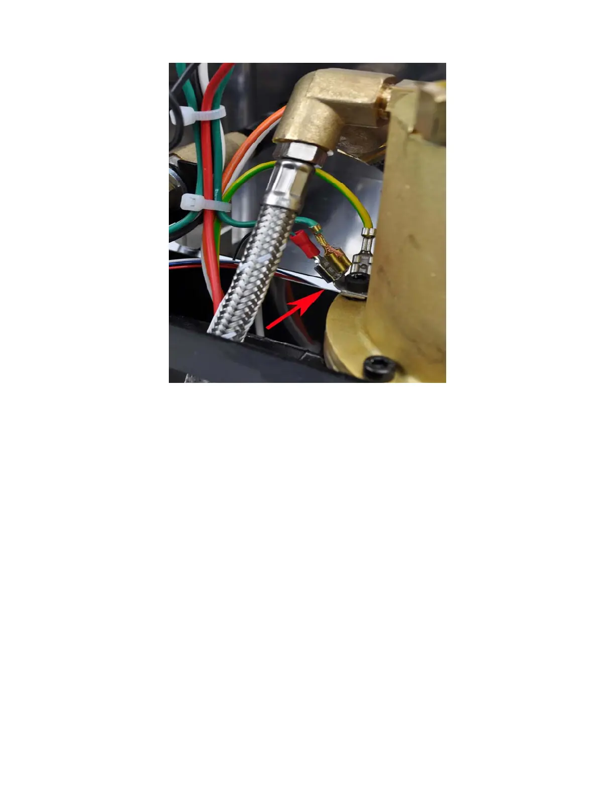 Figure 21. Install the controller box grounding wire to the boiler. Red arrow shows its