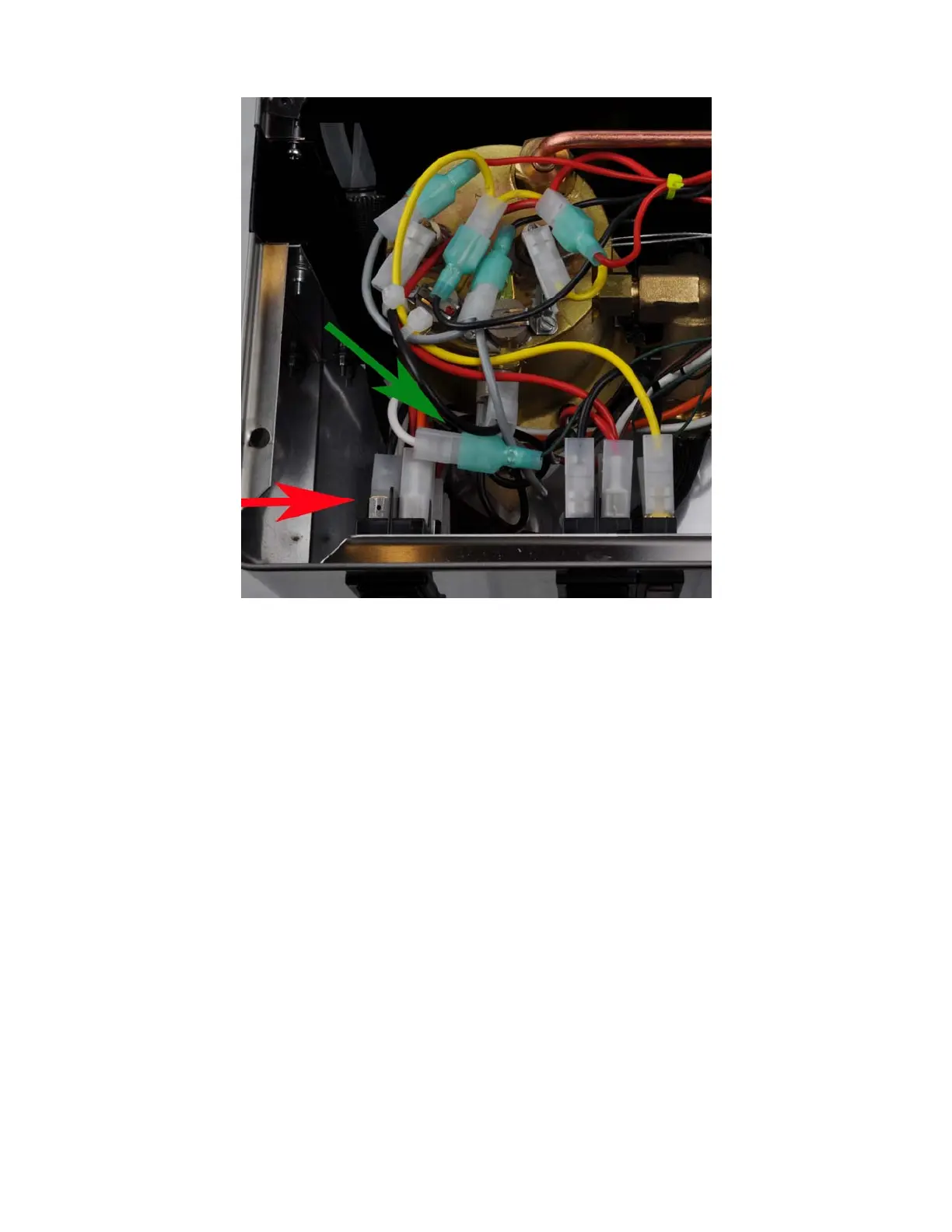 Figure. 24. Red arrow shows where the white cable has been removed. Green arrow