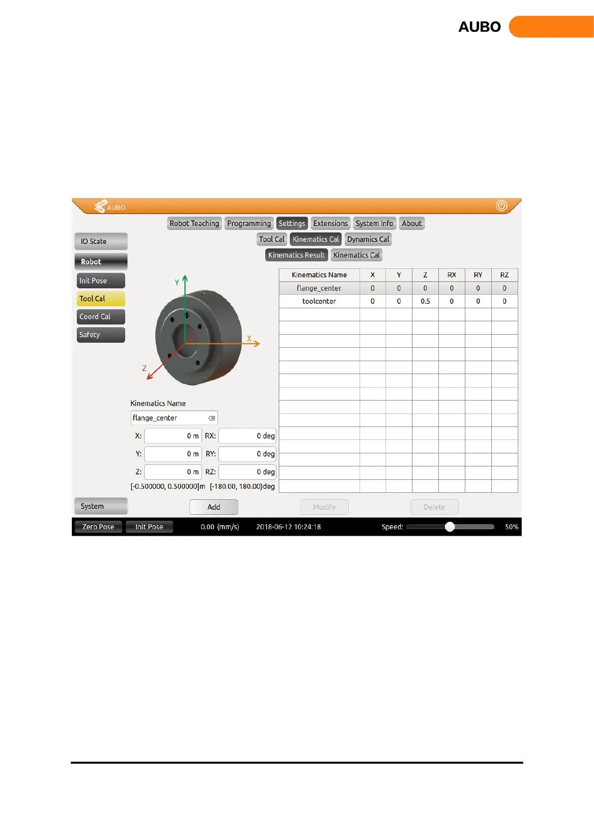 parameters of the end tool through these waypoints. Select Tool Calibrate Mode option, then, Kinematics