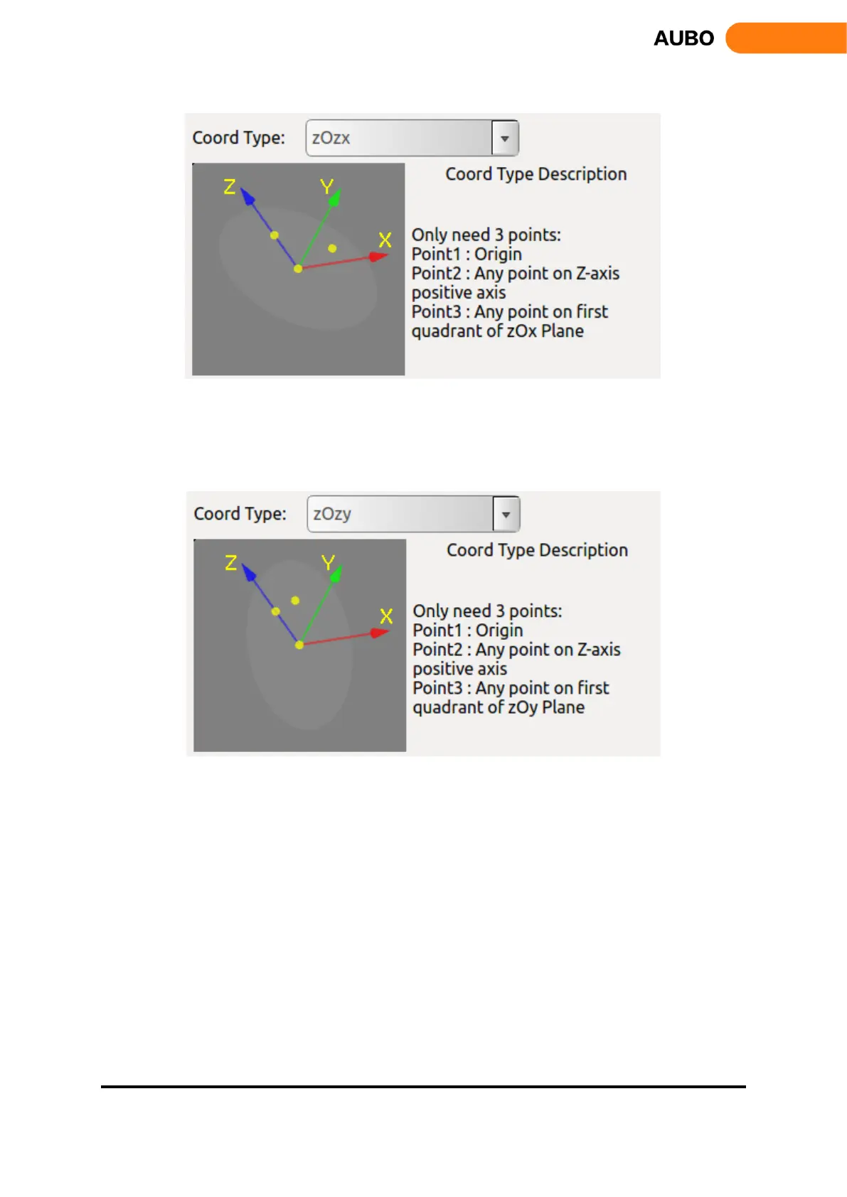 The figure is zOzy type. The first point requires for the calibration is the origin of the coordinate system.