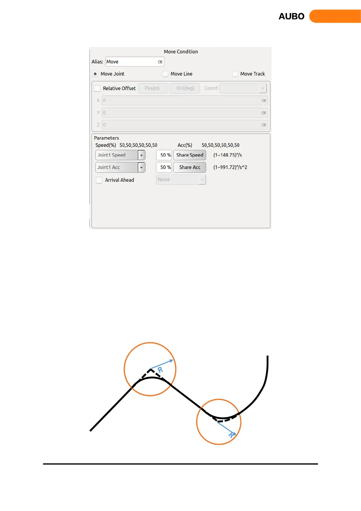 The Move Condition Setting has three choices: Move Joint, Move Line, and Move Track.
