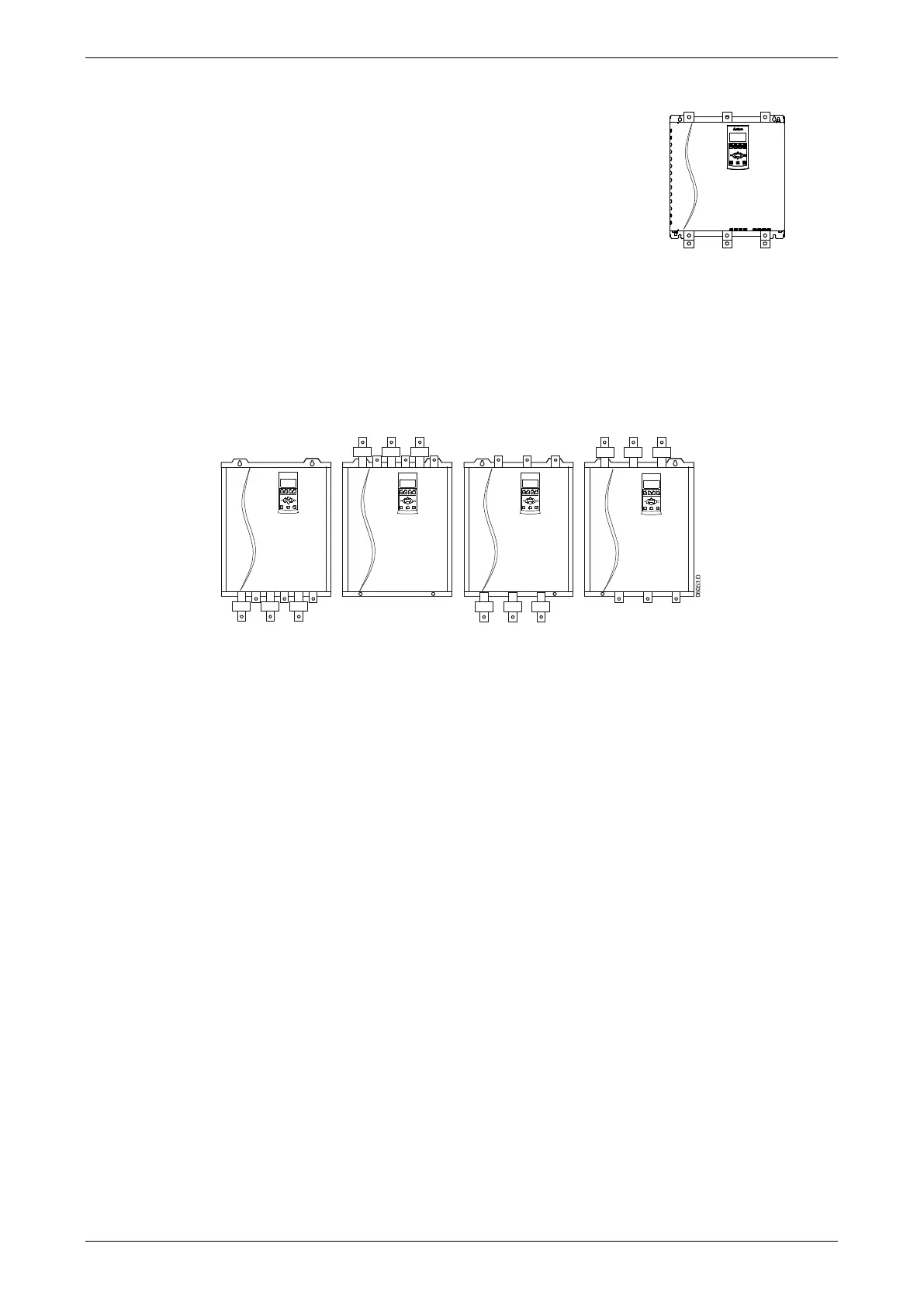 The busbars on non-bypassed models EMX3-0360C ~ EMX3-1600C can be adjusted for top or bottom input and output as required.