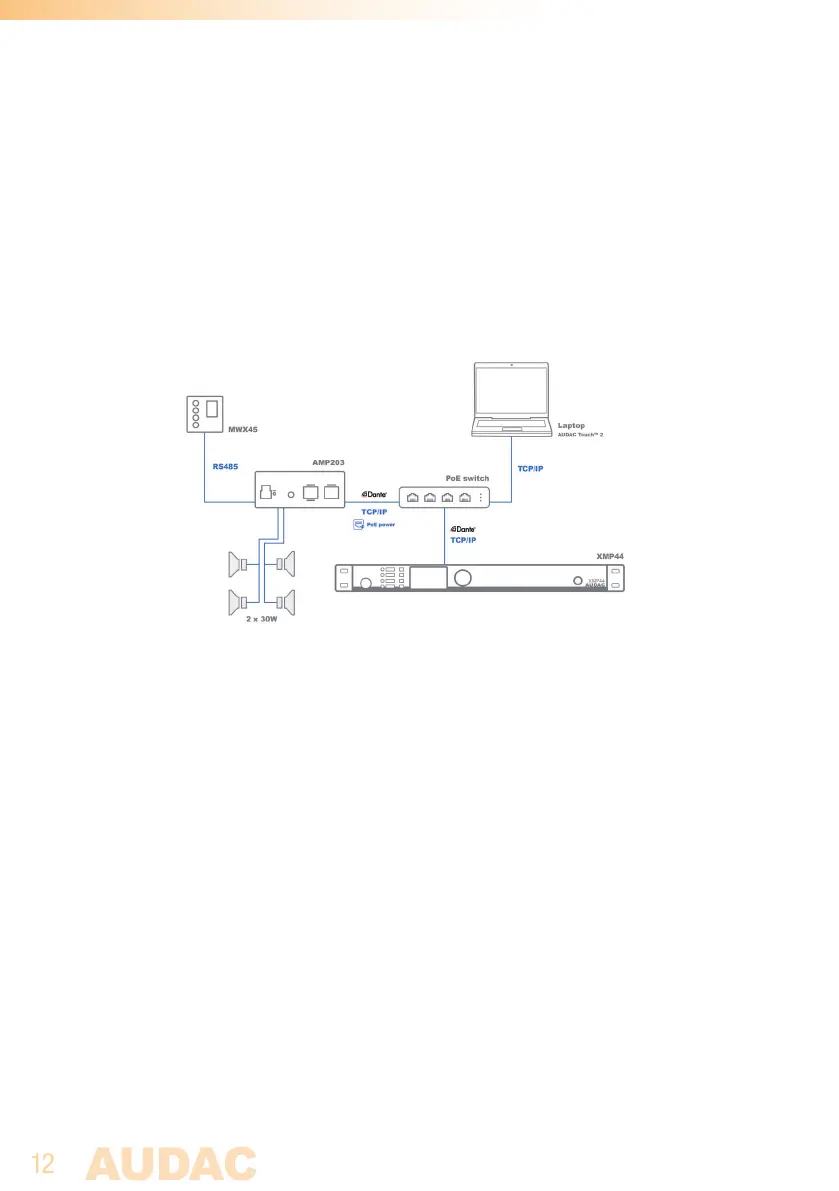 an external Dante source is connected to the network (e.g. AUDAC XMP44). The control