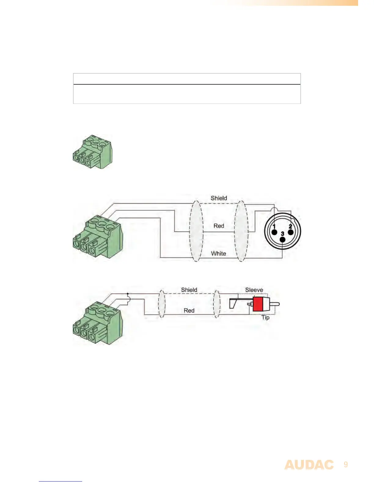 Thein-andoutputconnectionsforAUDACaudioequipmentareperformedcorresponding
