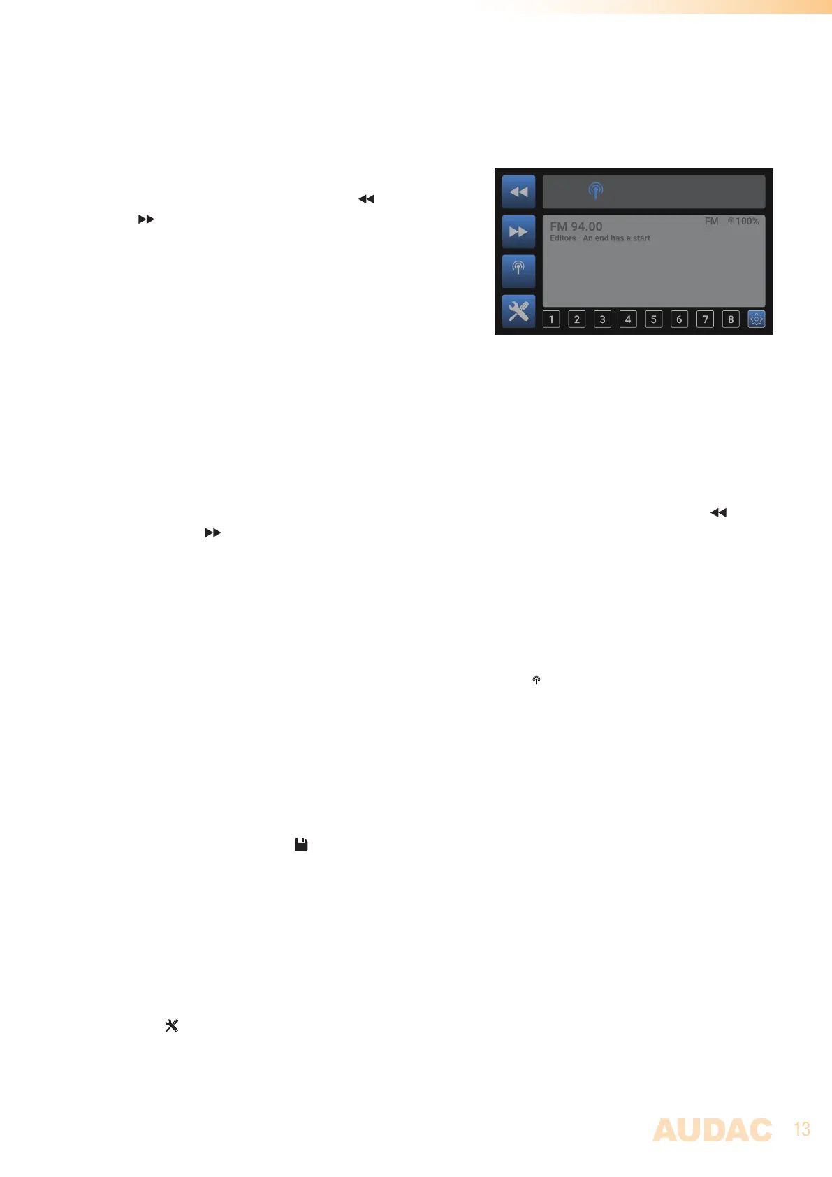 The currently playing DAB radio station (if switched to DAB mode) is selected by pressing the (tuning